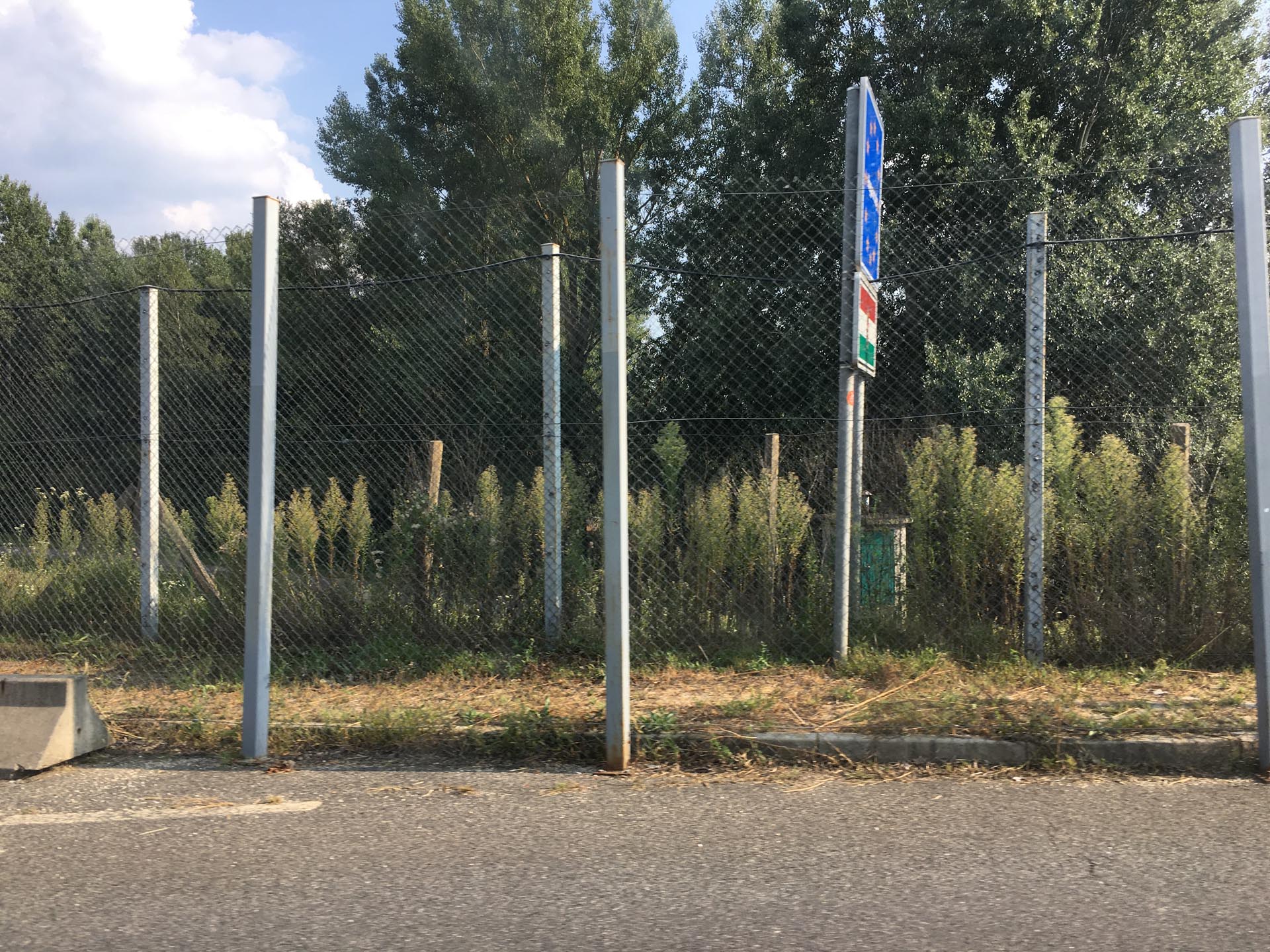 Researching the legal framework of borders and border markings. Looking at ordinance forms, content, and the methodology of placing prescribed signs at border crossings and along the border. We go to the tunnel/military bunker between NOVIGRAD PODRAVSKI, SRDINAC and JAVOROVAC. There are no traces of migrants, only local and Cyrillic inscriptions. At LEGRAD is the confluence of the Mura and the Drava. Where the river flows there is no fence as the current is often too strong to cross. BOTOVO railway crossing has a fence and a gate where the train doesn’t pass. GOTALOVO, fence, GOLA fence. We sit in a cafe. No one will do an interview. We move along the fence that is right next to the road and film.