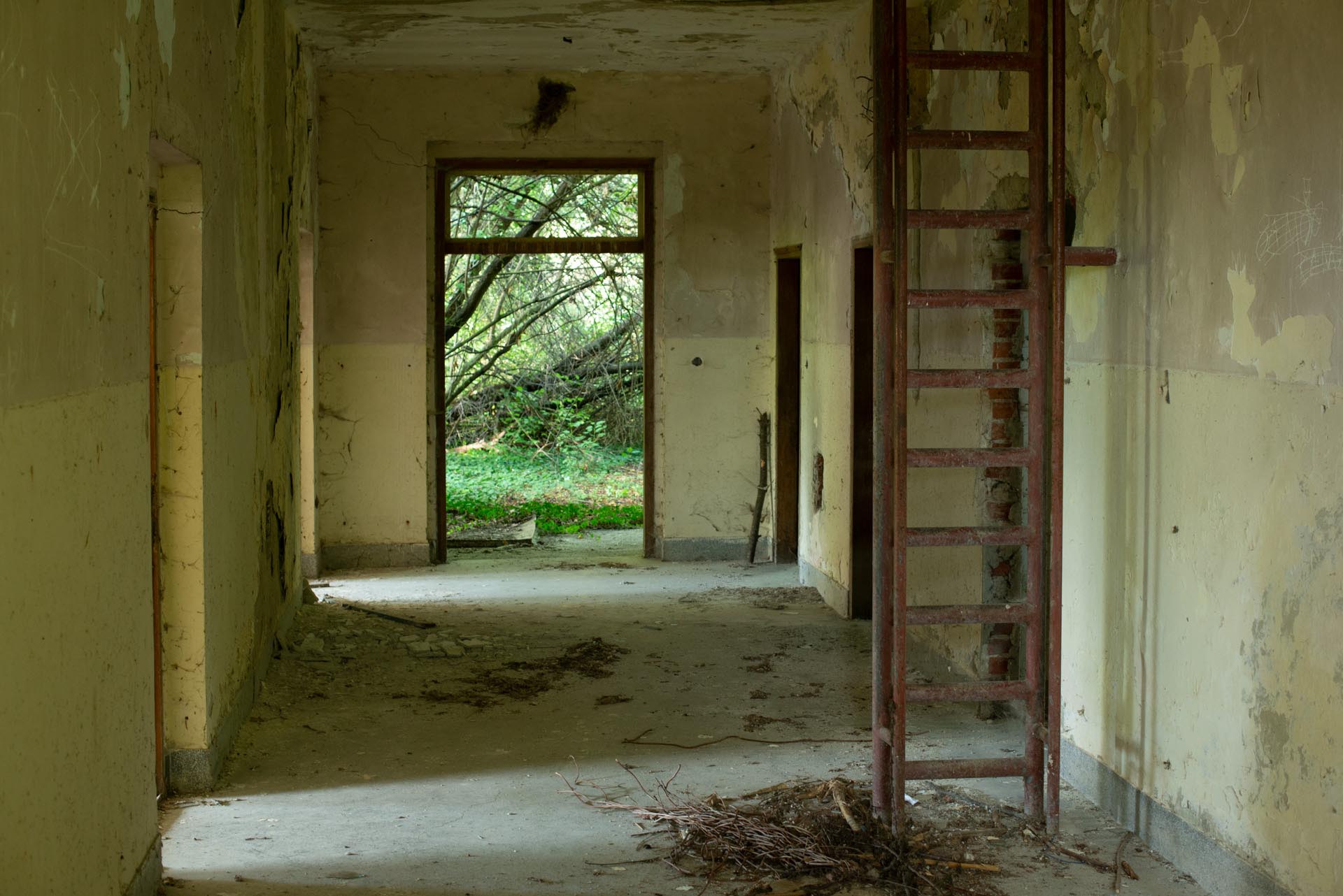 The 2 teams meet up in VIRJE. Interview near Virje with Tomislav's neighbor, Zlatko B., at his vineyard house. He is retired, but still works dispersing clouds to fight against weather-based crop destruction. On the Drava near NOVO VIRJE there are no fences. In ŽDALA, a Hungarian village in Croatia, the fence goes along the village. We follow a dead-end street to find a ruined and abandoned state border security facility that was used by the army and the cavalry as a rest area and was closed down in 2000. We find no traces of migrants. We're filming wire and razor wire fence there. We go to the local Flamingo cafe to interview the council president and cafe owner. He offers us his land for sleeping overnight.